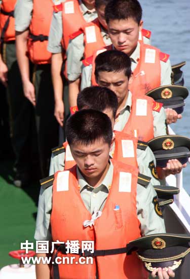 中廣網(wǎng)?8月15日消息 (記者朱永 通訊員林小策、肖宇飛)  今天上午10時(shí)整,海南公安邊防總隊海警一支隊巡邏艇汽笛長(cháng)鳴,國旗半降,全體官兵脫帽默哀3分鐘,隨后官兵在海上拋灑鮮花,表達對甘肅舟曲特大山洪泥石流遇難同胞的深切哀悼,為災區人民祈福。
