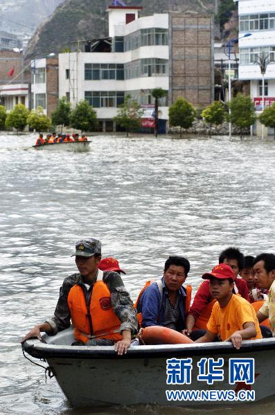 8月17日,舟曲縣災區堰塞湖水位有所下降,但縣城主要街道和房屋仍浸泡在水中,救援官兵的沖鋒舟為舟曲受災群眾開(kāi)辟了一條水上通道,大大方便了受災群眾的出行。