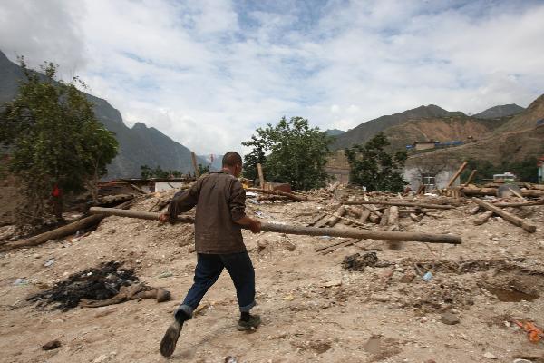 8月19日,一位居民在廢墟上整理已經(jīng)損毀的家。月圓村,一個(gè)美麗的名字,甘肅甘南藏族自治州舟曲縣白龍江畔一個(gè)祥和的村莊。 僅僅一夜之間,“圓月”變成了一彎殘月。 8月8日發(fā)生的特大山洪泥石流,幾乎給這個(gè)村莊帶來(lái)了滅頂之災,全村200多戶(hù)居民、700多人所剩無(wú)幾。災難也讓全世界的目光聚集到這里,讓人們記住了這個(gè)美麗又悲傷的名字。初來(lái)舟曲的人已經(jīng)無(wú)法想象月圓村原本的樣子,數米厚的泥石把村莊徹底摧毀、掩埋。幸存的村民也只能憑借記憶尋找“家”曾經(jīng)的位置。因為害怕受泥石流沖擊后的房子發(fā)生危險,更擔心再次發(fā)生洪水,村民有的前往外地投靠親友,大部分則住到了隍廟山上的受災群眾安置點(diǎn)。一頂頂藍色的救災帳篷,就是他們臨時(shí)的家。經(jīng)常有安置點(diǎn)的群眾站在山頂的帳篷邊,久久地凝望祖祖輩輩生活的村莊。從安置點(diǎn)的山上望去,泥石流核心區域邊上狹窄的一排房子就是留存下來(lái)的月圓村。74歲的尚大爺一家就住在這里,他家因為地勢較高,沒(méi)有受到損傷。孫子去救災了,在他的帳篷里,記者為留在家里的人拍了張合影。在這個(gè)名叫月圓的村子里,能拍張全家福的家庭,已經(jīng)寥寥可數了。更多的人曾經(jīng)或者正在泥石覆蓋的村莊尋找親人。泥石流經(jīng)過(guò)后地面稀溏,常常一腳踩下去,深可沒(méi)膝。何坤曾經(jīng)跟著(zhù)姑姑、跟著(zhù)外公,憑著(zhù)記憶在黃泥石中尋找遇難的9位家人。因為去了外公家,這個(gè)16歲的男孩逃過(guò)一劫。親人的遺體找到后,何坤前往受災群眾安置點(diǎn)做了一名志愿者,他說(shuō)這樣做是為了幫助別人,也為減輕自己的痛苦。災難過(guò)去10余天了,受災群眾的日常生活正在一點(diǎn)點(diǎn)恢復。人們開(kāi)始往山上運送發(fā)電機;受沖擊較輕的村民忙著(zhù)整理家園;安置點(diǎn)的帳篷外,孩子們玩起了跳皮筋…… 曾經(jīng)的月圓村找不到了。不見(jiàn)了溪邊村落的流水潺潺,濃蔭匝地。最終的災后重建方案尚未公布,如果村子整體搬遷,或許連“月圓村”這個(gè)名字也會(huì )永遠消失。但月圓村會(huì )一直在那里。安置點(diǎn)里無(wú)憂(yōu)無(wú)慮跳皮筋的孩子就是月圓村,樹(shù)影里的蟬鳴就是月圓村,廢墟上果實(shí)累累的青蘋(píng)樹(shù)就是月圓村,村民們堅強不屈重建家園的精神就是月圓村!