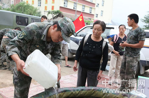 災區群眾自發(fā)為救災部隊送來(lái)飲用水