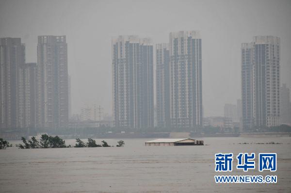 6月22日,贛江江心洲被水淹的房子只露出房頂。當日,記者從江西省防總獲悉,按目前雨水情分析,預計贛江洪峰將于6月23日凌晨時(shí)分經(jīng)過(guò)南昌站,洪峰水位23.80米,超警戒0.80米,流量每秒20000立方米,南昌將接受考驗。新華社記者 陳春園 攝