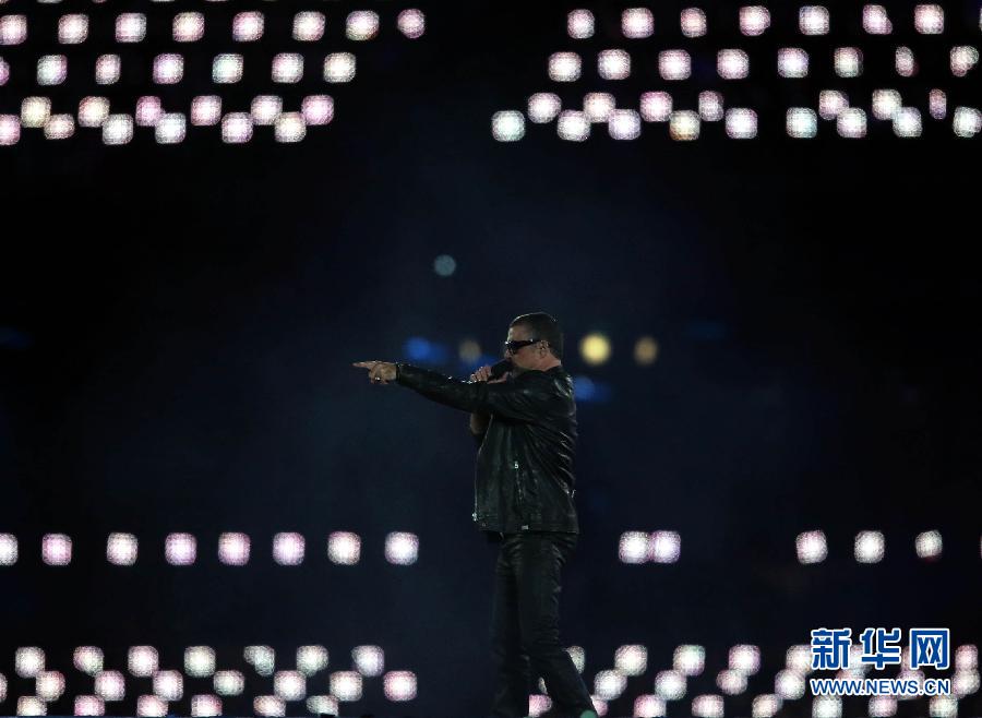 2012年8月12日,第三十屆夏季奧林匹克運動(dòng)會(huì )閉幕式在倫敦奧運會(huì )主體育場(chǎng)舉行。圖為喬治·麥克在閉幕式上演唱。 新華社記者 沈伯韓 攝