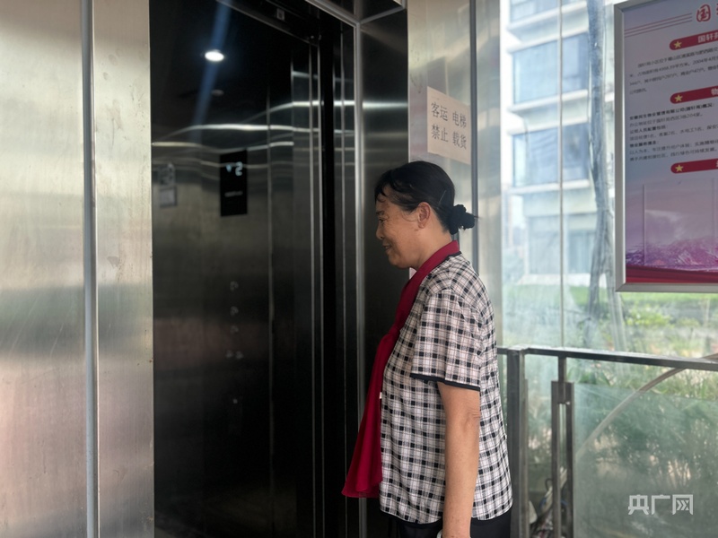 國軒苑東區一樓直達二樓平臺加裝的電梯已經(jīng)運行(央廣網(wǎng)記者 張琳琳 攝)