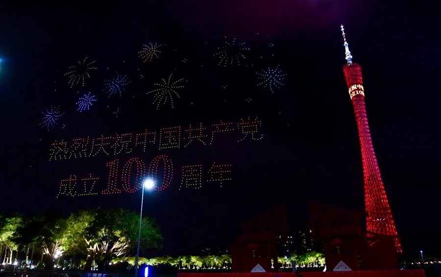 慶祝建黨100周年!廣州1520架無(wú)人機震撼夜空