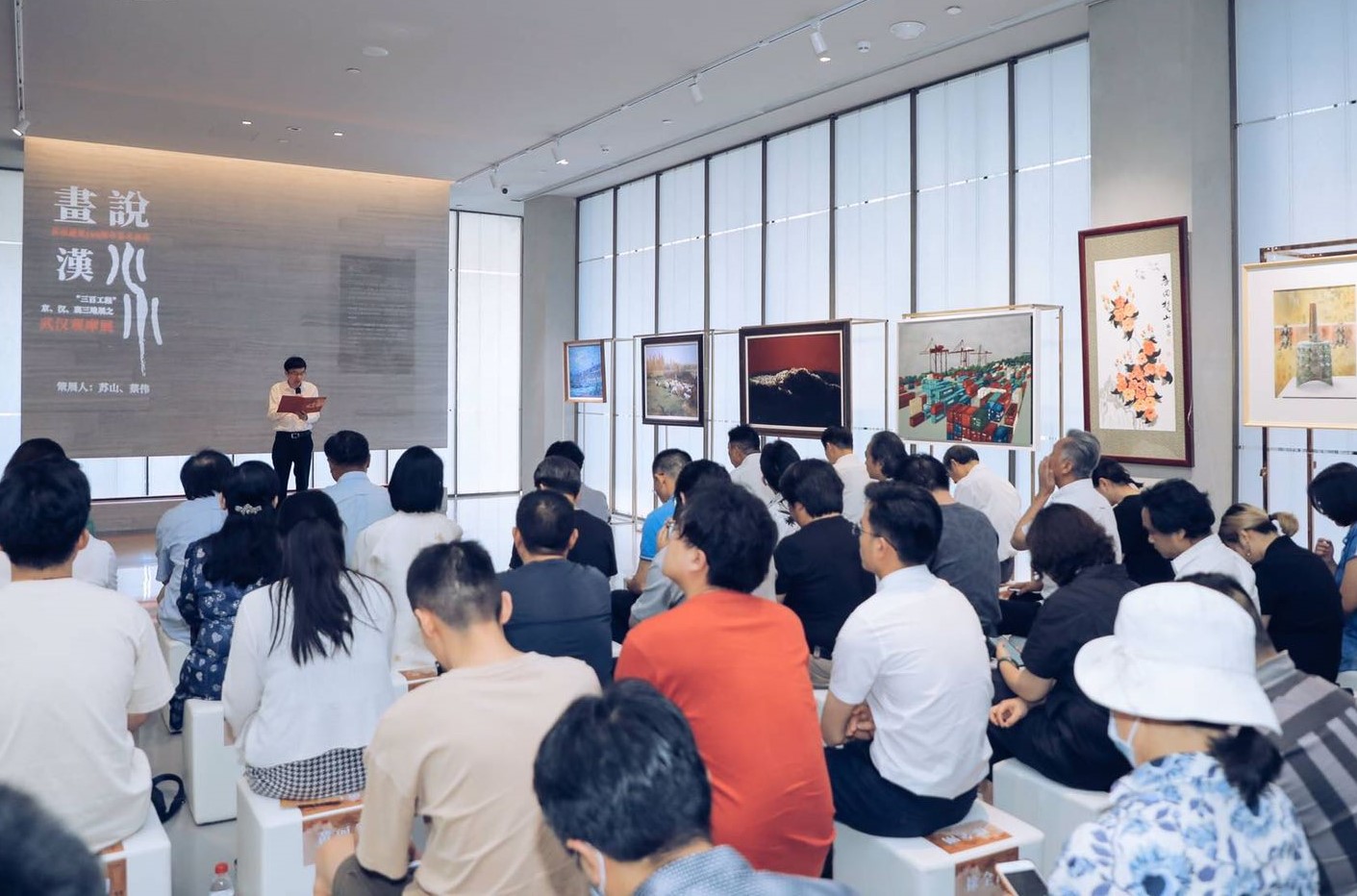 央廣網(wǎng)武漢6月7日消息(記者凌姝 通訊員一凡 陳。┢G陽(yáng)高照,江水騰歡。6月5日,在漢江與長(cháng)江匯合的武漢濱江,《畫(huà)說(shuō)漢水、藝心向黨》經(jīng)典美術(shù)作品展在新落成的聯(lián)投集團浮生藝術(shù)館開(kāi)幕,吸引社會(huì )各界名流300余人。