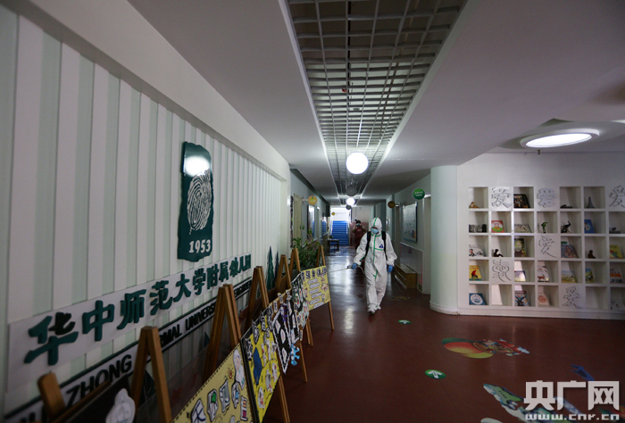 圖為:2020年8月28日,在湖北省武漢市華中師范大學(xué)附屬鐵橋幼兒園內,消防員正在對公共區域進(jìn)行全面消殺。(央廣網(wǎng)發(fā) 通訊員王方攝)