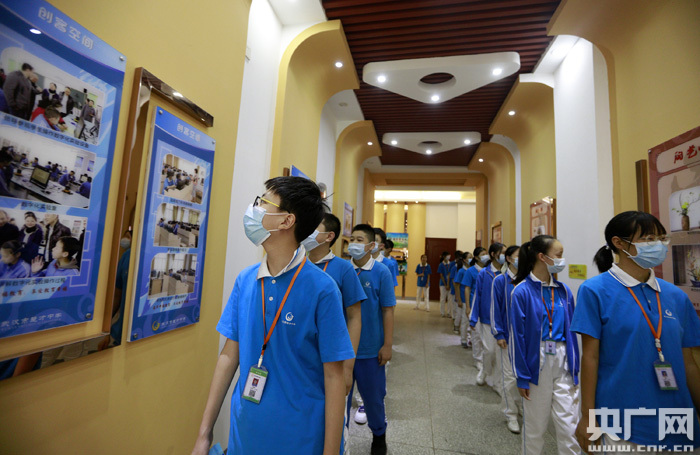 圖為:2020年8月28日,在湖北省武漢市楚才中學(xué)文化長(cháng)廊內,七年級學(xué)生正接受銜接教育。(央廣網(wǎng)發(fā) 通訊員王方攝)