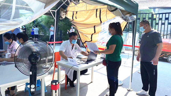 進(jìn)入夏季以來(lái),西安持續高溫,為了減少酷暑天氣對市民接種造成影響,丈八街道社區衛生服務(wù)中心在院子里搭起了遮陽(yáng)布和防曬網(wǎng),配備了電風(fēng)扇,并在氣溫超過(guò)35℃時(shí),向前來(lái)接種的市民免費提供溫開(kāi)水和綠豆湯,幫助市民消暑降溫。截至9日下午5時(shí),丈八街道已接種疫苗269069劑次,124825人完成了兩劑次疫苗接種。