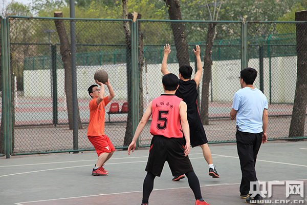 王濤說(shuō),初高中時(shí)的埋頭苦學(xué),讓他烙下了頸椎病。自從打了籃球,頸椎病的毛病逐漸緩解了。王濤現在讀博士三年級,正在準備畢業(yè)論文,課業(yè)工作的壓力大。打籃球能夠讓他肌肉放松,釋放壓力。
