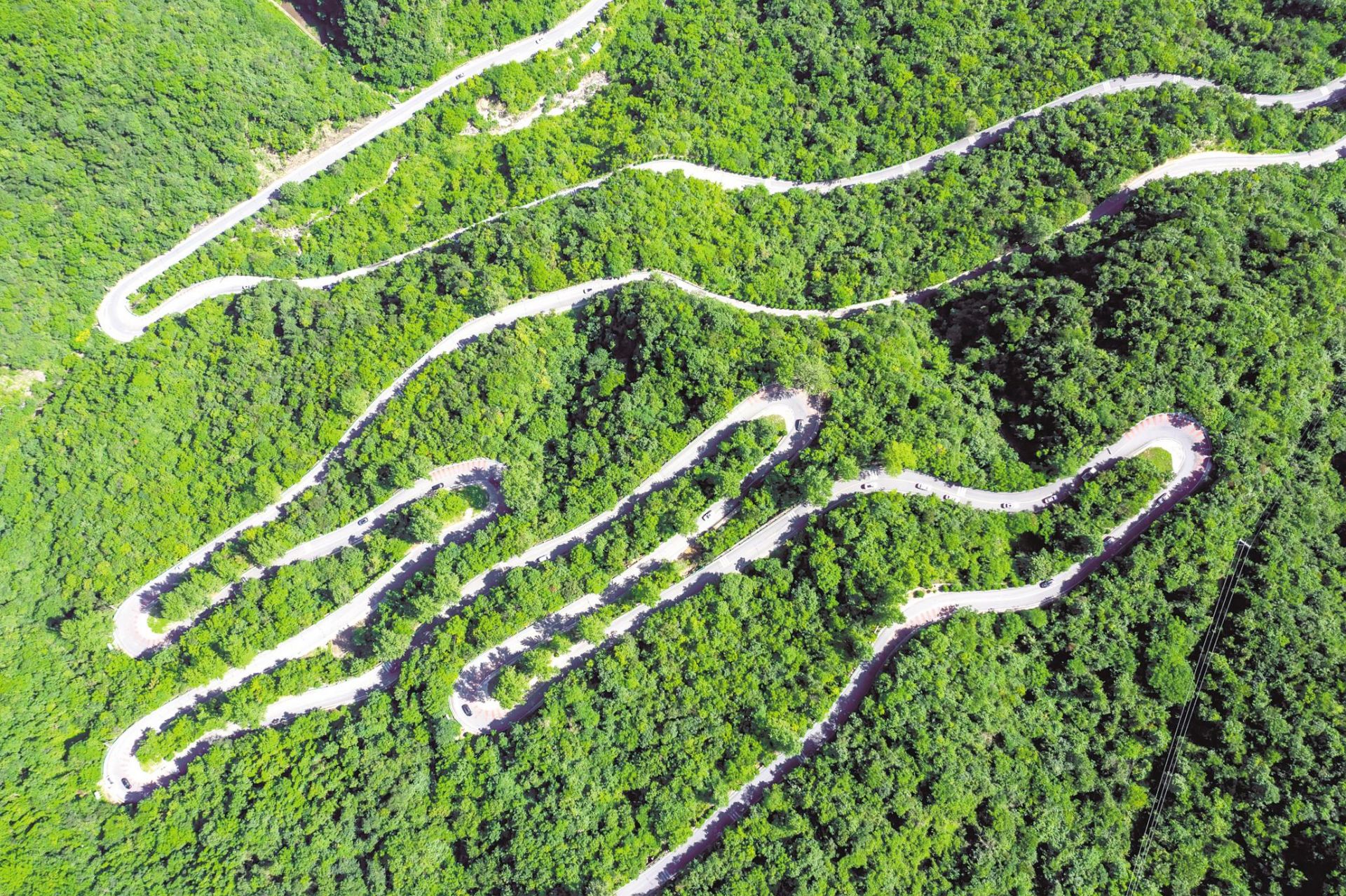 十堰市房縣野人谷鎮境內的“十回首”盤(pán)山公路。(湖北日報全媒記者 陳勇 攝)